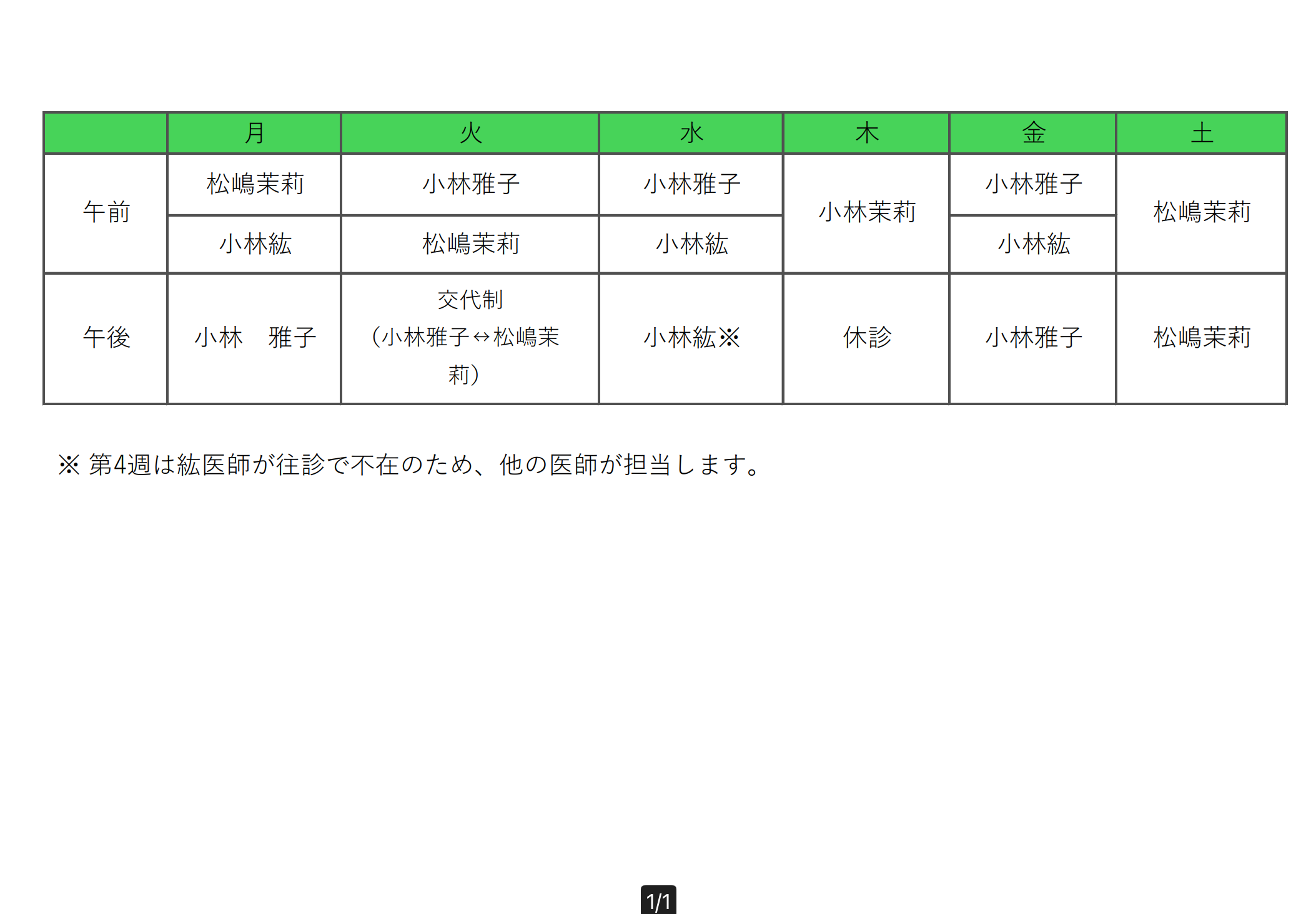 よって、下記のとおりに診療体制を変更させて頂きます。